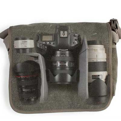 - Вмещает 2-4 объектива в главном отделении и зеркальную камеру в переднем кармане